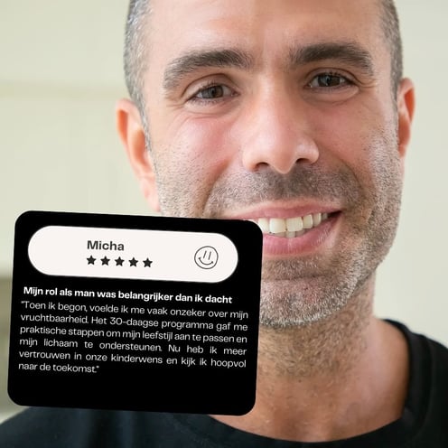 Verhoog de kans op een succesvolle zwangerschap met ons 30-daagse programma, gericht op het versterken van je mannelijke vruchtbaarheid.
