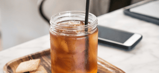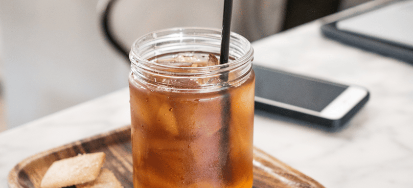 Cold-brew ice tea with garden herbs